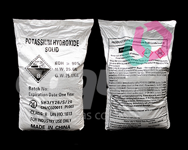 Sólido en escamas de color blanco, muy higroscópico, delicuescente, de carácter fuertemente alcalino.