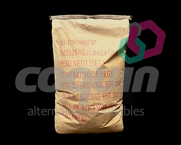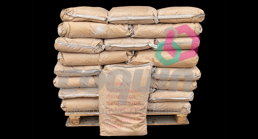 Es un mineral de silicato de magnesio hidratado, procedente de rocas metamórficas. APLICACIONES: En la industria de pintura como aditivo, en la industria cosmética, es usado en la fabricación de lubricantes para productos cosméticos; los usos más conocidos son en polvo de talco.